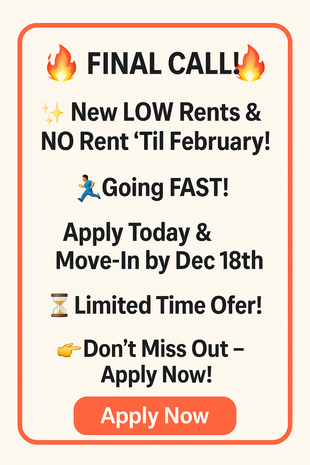🔥 FINAL CALL! 🔥 ✨ New LOW Rents & NO Rent ‘Til February! ✨